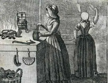 Köchinnen bei der Arbeit, Illustration aus Allgemeines deutsches Kochbuch, 1819